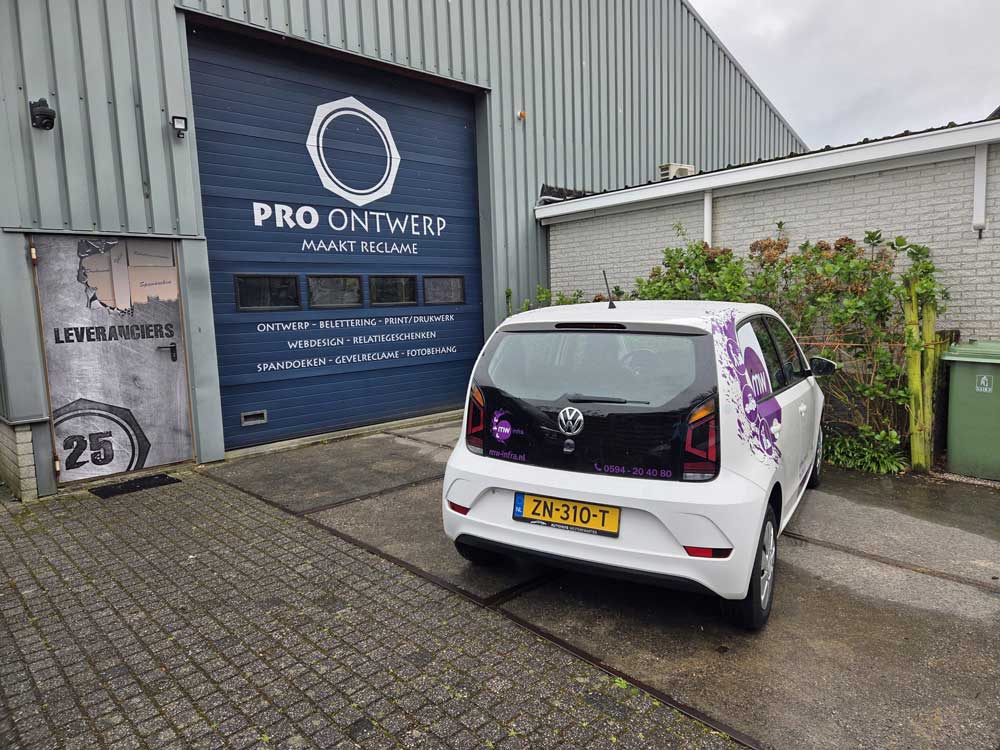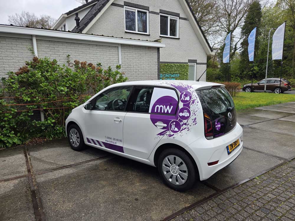 We hebben deze VW Up van MW Infra voorzien van belettering..