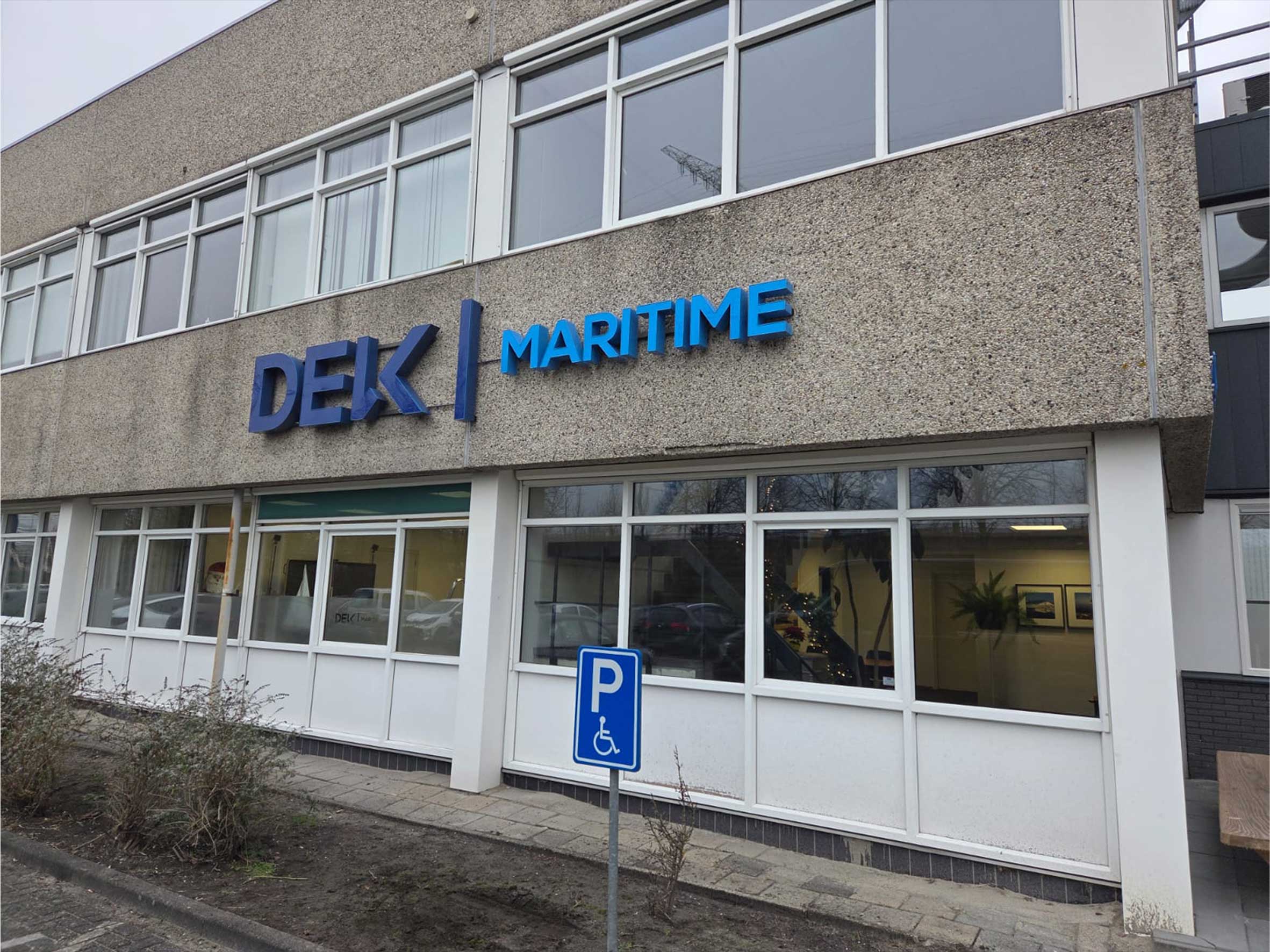Wegens verhuizing hebben wij de lichtreclame van Dekc Maritime in Groningen verplaatst van het ene pand naar de ander. Zie hier het lichtgevende resultaat...