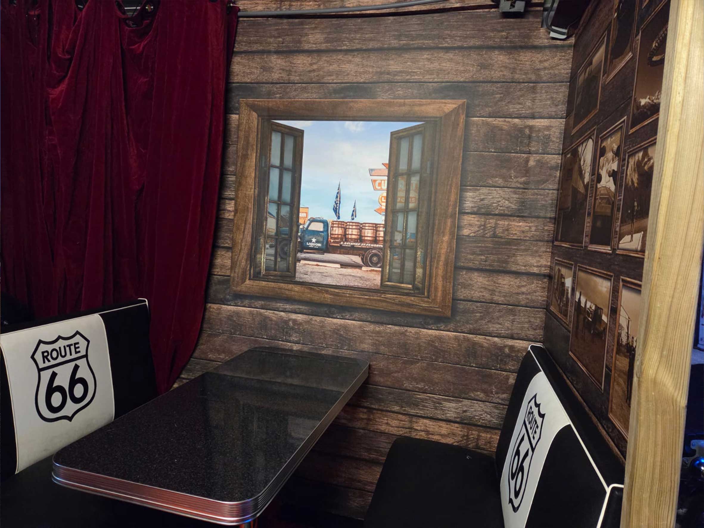 We hebben bij deze particulier fotobehang geplakt dat meteen sfeer brengt. Het behang geeft het gevoel alsof je zo een café in Texas binnenstapt...