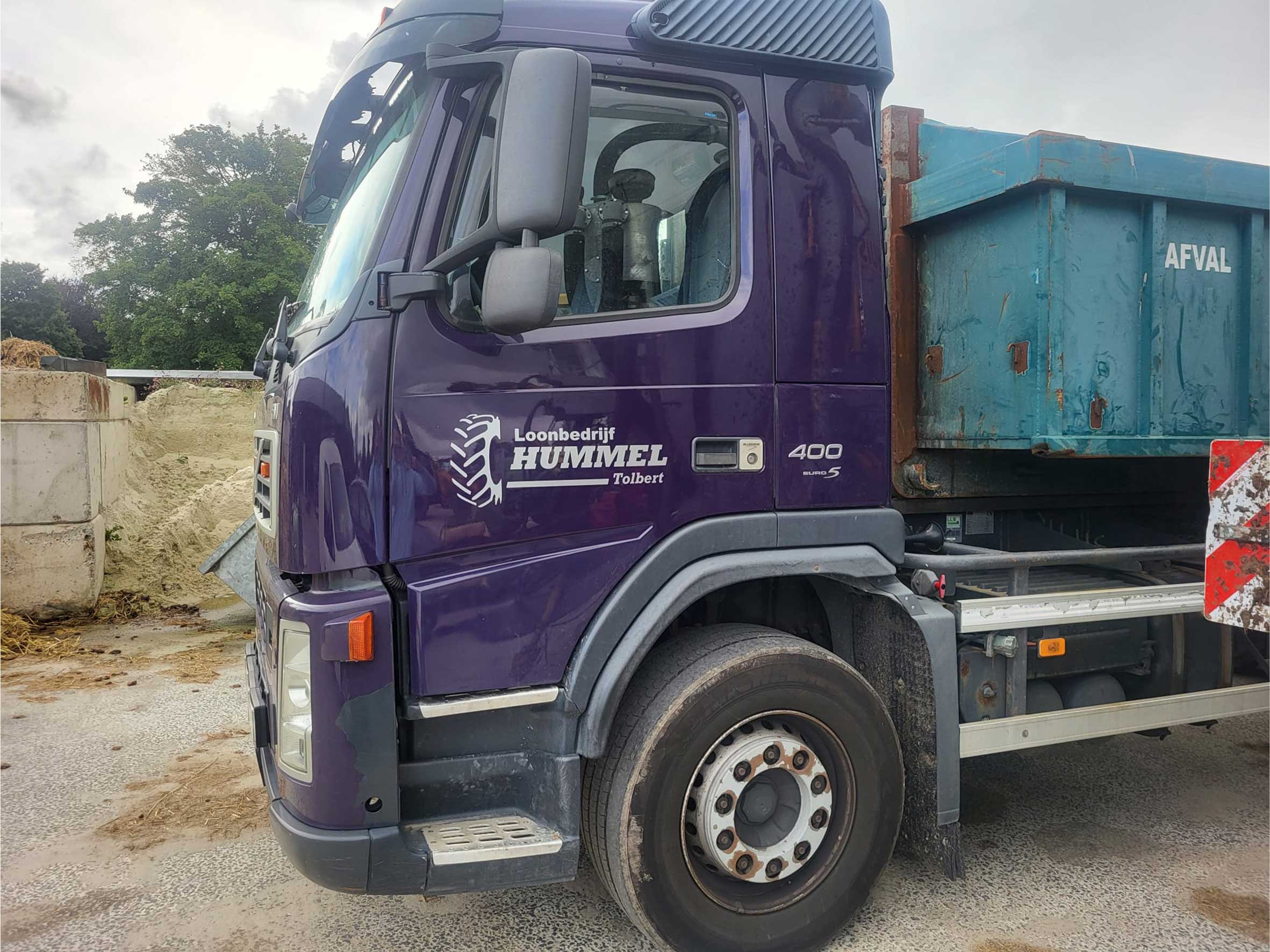 Wij hebben deze Volvo vrachtwagen van Loonbedrijf Hummel Tolbert voorzien van belettering op beide deuren...