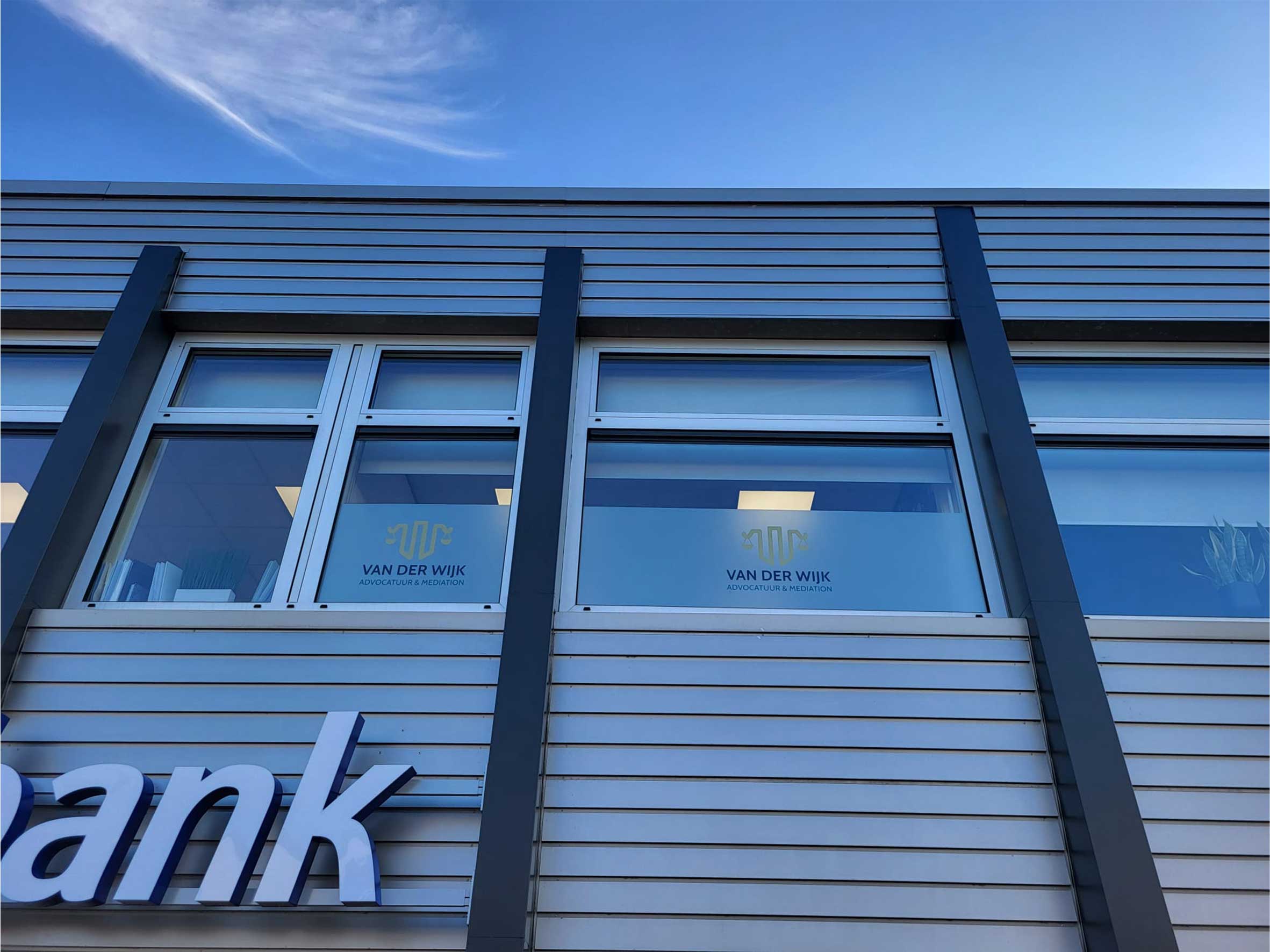We hebben het kantoor van Van Der Wijk Advocatuur & Mediation voorzien van raambelettering. Dit zorgt voor reclame en verminderd inkijk. Wil jij dit ook? Neem gerust contact met ons op!..