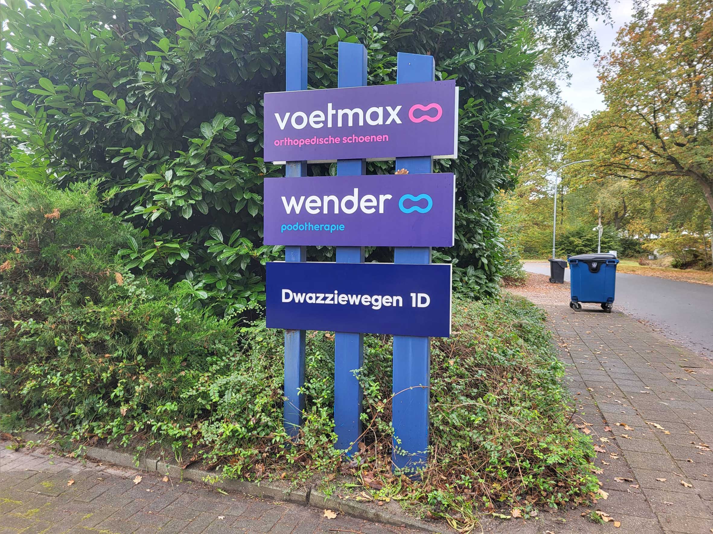 Vorigeweek zijn wij langs geweest bij Voetmax en Wender in Roden om nieuwe letters te monteren aan de gevel en 2 stickers te plakken langs de weg met het adres erop...